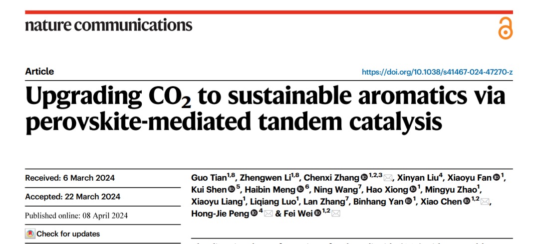 2024年4月8日,h图书馆 工业深度减碳研究中心副主任、化学工程系魏飞教授课题组在《自然·通讯》上在线发表“Upgrading CO2 to sustainable aromatics via perovskite-mediated tandem catalysis”,标志课题组在芳烃(可再生航煤)合成上取得进展。研究背景二氧化碳 (CO2) 是最著名的温室气体,会导致全球变暖以及一系列气候和环境问题。 为了缓解这种人为气候变化,迫切需要开发二氧化碳排放解决方案。 因此,利用...