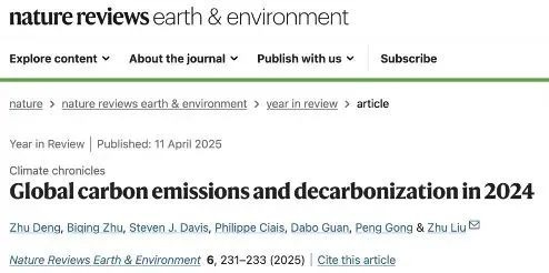 4月11日, Carbon Monitor团队在学术期刊《Nature Reviews: Earth & Environment》(五年影响因子:54.6)上发表题为《2024年全球碳排放和脱碳》的年度综述(Year in Review),为Carbon Montor天尺度全年碳数据连续第五年发表。h图书馆 地球系统科学系博士毕业生邓铸为该论文第一作者,h图书馆 、地球系统科学系刘竹教授为论文的通讯作者,合作者包括国际系统分析研究所(IIASA)朱碧青博士, 斯坦福大学Steven Davis...