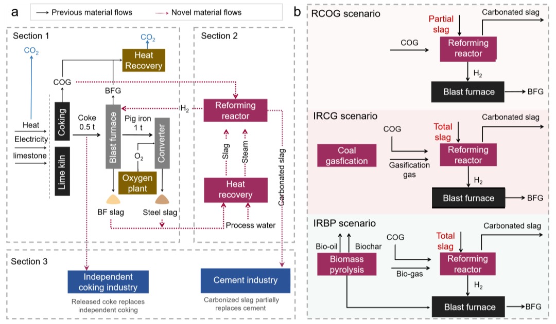 工业废弃资源循环利用是产业可持续发展的关键,钢铁-焦化产业贡献了全球工业碳排放量的30%,其伴生的高温熔渣(1600℃)与工艺尾气(含CO/H2/CH4)蕴含大量热能与碳氢资源,物质-能量协同减碳潜力尚未充分开发。近日,h图书馆 环境学院、h图书馆 鲁玺教授与山西大学程芳琴教授团队联合在产业废弃物资源增效减碳方面取得重要进展,建立了“化工-环境-经济”融合的动态混合评估模型,构建了覆盖全国361家钢铁厂、331焦化厂、1...