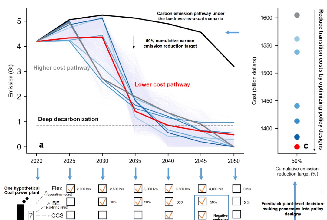 在巴黎协定提出的1.5℃温控目标框架下,全球燃煤电厂排放需要快速下降。然而,中国和印度等发展中国家燃煤电厂的装机容量和数量非常庞大且多为近年来新建,强制退役这些燃煤电厂可能会导致巨额资产搁浅。除了强制退役外,燃煤电厂还可通过生物质掺烧、碳捕获与封存、基于灵活性改造降低发电小时数等改造策略减少排放,或是通过生物质掺烧耦合碳捕获与封存实现负碳排放。而采用过于单一减排策略(如:强制退役)和不合理的碳减排...