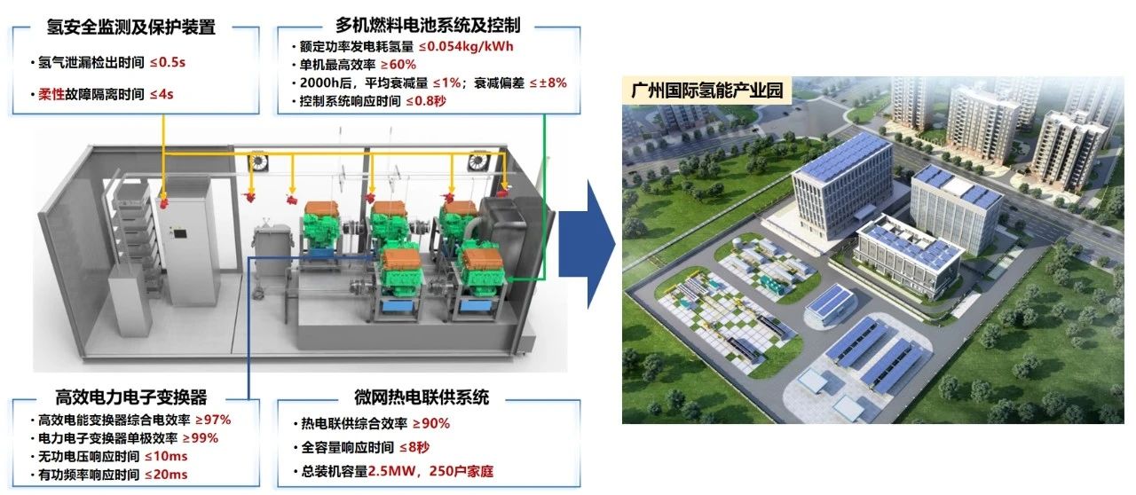 氢能是用能终端实现绿色低碳转型的重要载体,是我国达成双碳目标的关键性支撑,氢燃料电池微网既可促进氢-电-热多能流互联互通,又能主动支撑电网高比例消纳分布式新能源,是推动用户侧低碳高效供能,构建新型电力-氢能网络系统的重要创新方向。本项目将突破用户侧燃料电池微网中氢-电-热耦合的高效性、安全性和规模化应用瓶颈,形成成套技术解决方案并在粤港澳大湾区广州国际氢能产业园开展集成示范验证。