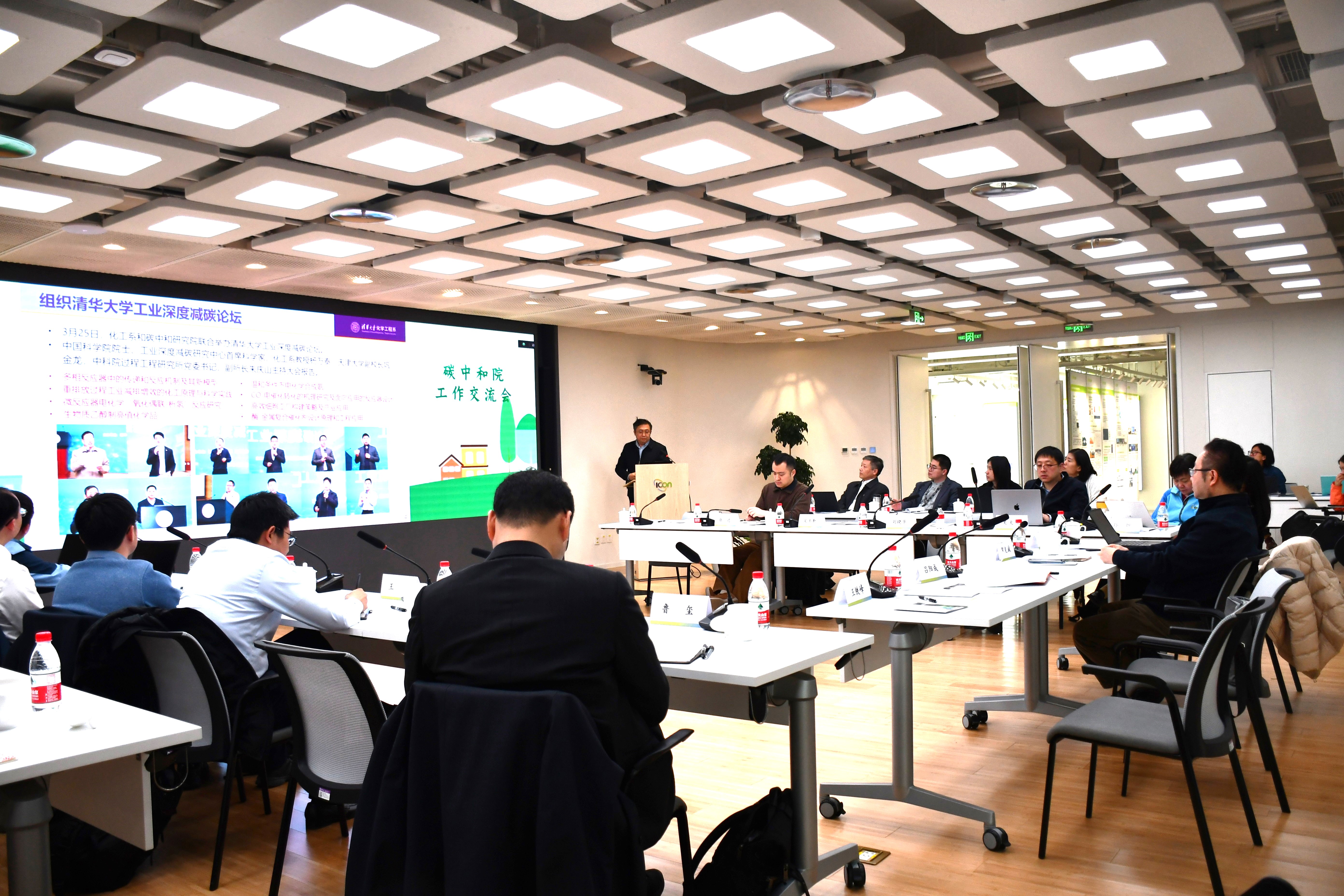 (以下简称碳中和院)召开工作交流会。院长贺克斌、院各部门主管领导、各研究中心管理团队和骨干成员共20余人参加会议,副院长孙炘主持会议。