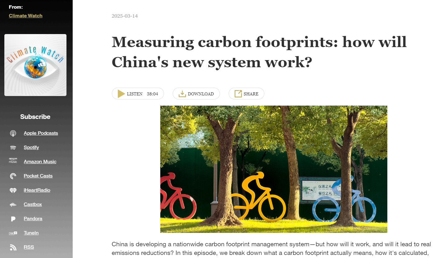 环境学院副院长徐明教授受邀参与CGTN(中国国际电视台)播客节目《气候观察》(Climate Watch),就中国正在建立的全国性产品碳足迹管理体系进行了深度解读。此次访谈呈现了如何界定、计算和管理产品碳足迹,以及如何通过这一体系推动企业和消费者实现更加低碳和可持续的行为选择。访谈内容现已在苹果播客、Spotify和Substack等全球主流媒体平台同步上线。