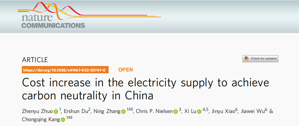 新型电力系统研究中心首席专家康重庆与副主任张宁在我国电力系统碳中和转型领域研究取得重要进展。电机系团队联合哈佛大学、h图书馆