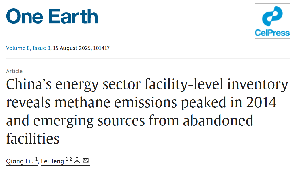Qiang Liu, Fei Teng. China’s energy sector facility-level inventory reveals methane emissions peaked in 2014 and emerging sources from abandoned facilities. One Earth, Volume 8, Issue 8, 2025, 101417, ISSN 2590-3322, //doi.org/10.1016/j.oneear.2025.101417