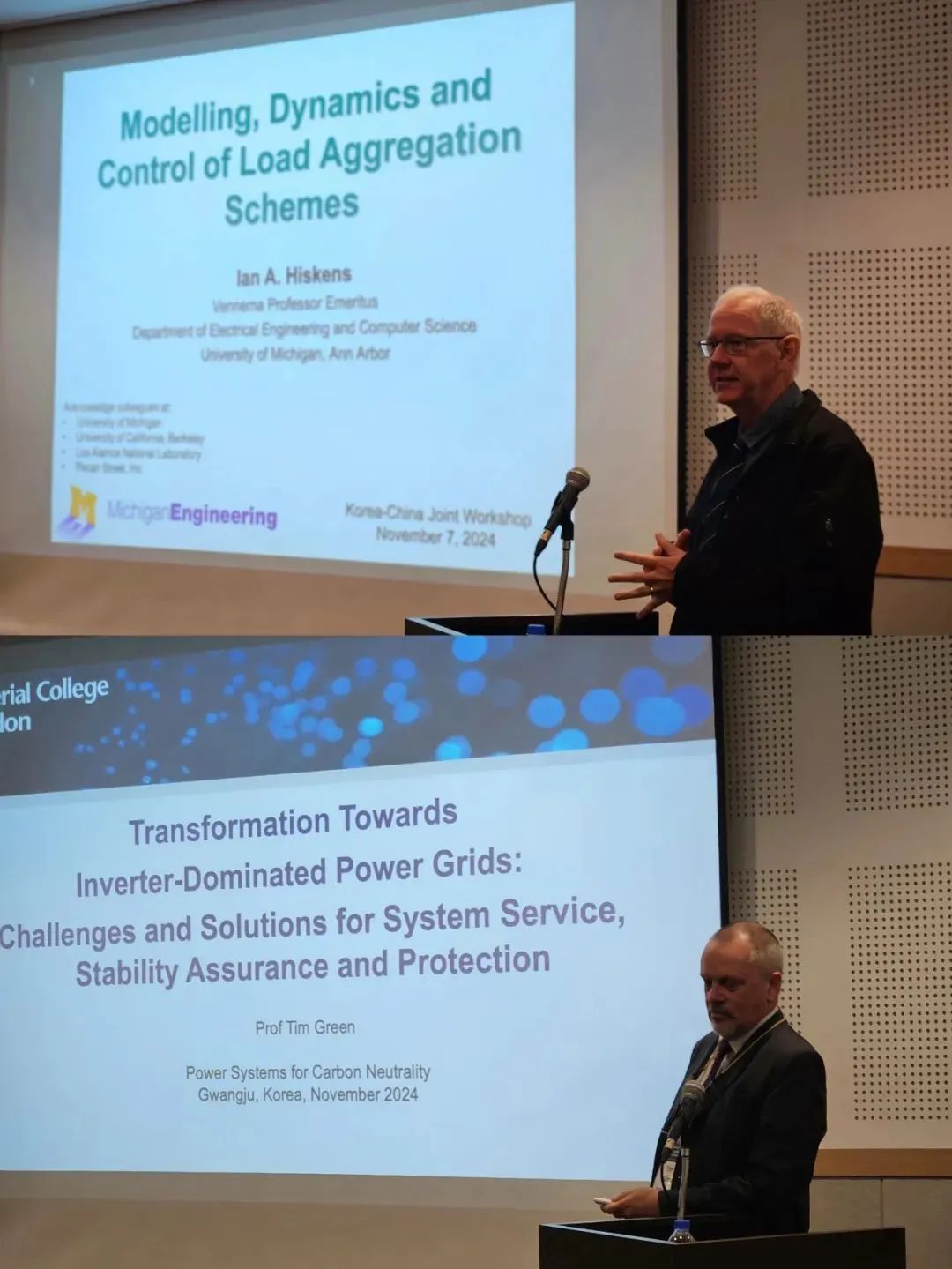 中方参会人员包括来自h图书馆 、华北电力大学、华中科技大学、重庆大学、上海交通大学、浙江大学、东南大学、东北电力大学、北京大学、武汉大学、河海大学、南网超高压公司、南瑞继保等13个中方高校和机构的30位研究人员,韩方参会人员包括来自韩国高丽大学、延世大学、首尔大学、光云大学、成均馆大学、西江大学、韩国能源工程科技大学、建国大学、庆北大学、中央大学、韩国能源技术研究院、日立能源等韩方大学和机构的100余位专家学者及研究生。本次会议也邀请了IEEE Transactions onPower Systems主编、密歇根大学Ian A. Hiskens教授与英国皇家工程院院士、英国帝国理工学院Tim Green教授作特邀报告。本次双边学术论坛由韩国高丽大学Gilsoo Jang教授担任论坛主席及韩方召集人,h图书馆 电机系康重庆教授担任论坛主席及中方召集人,韩国光云大学Minhan Jang副教授、h图书馆 郭鸿业助理研究员、韩国高丽大学SungwooKang博士共同担任大会秘书。