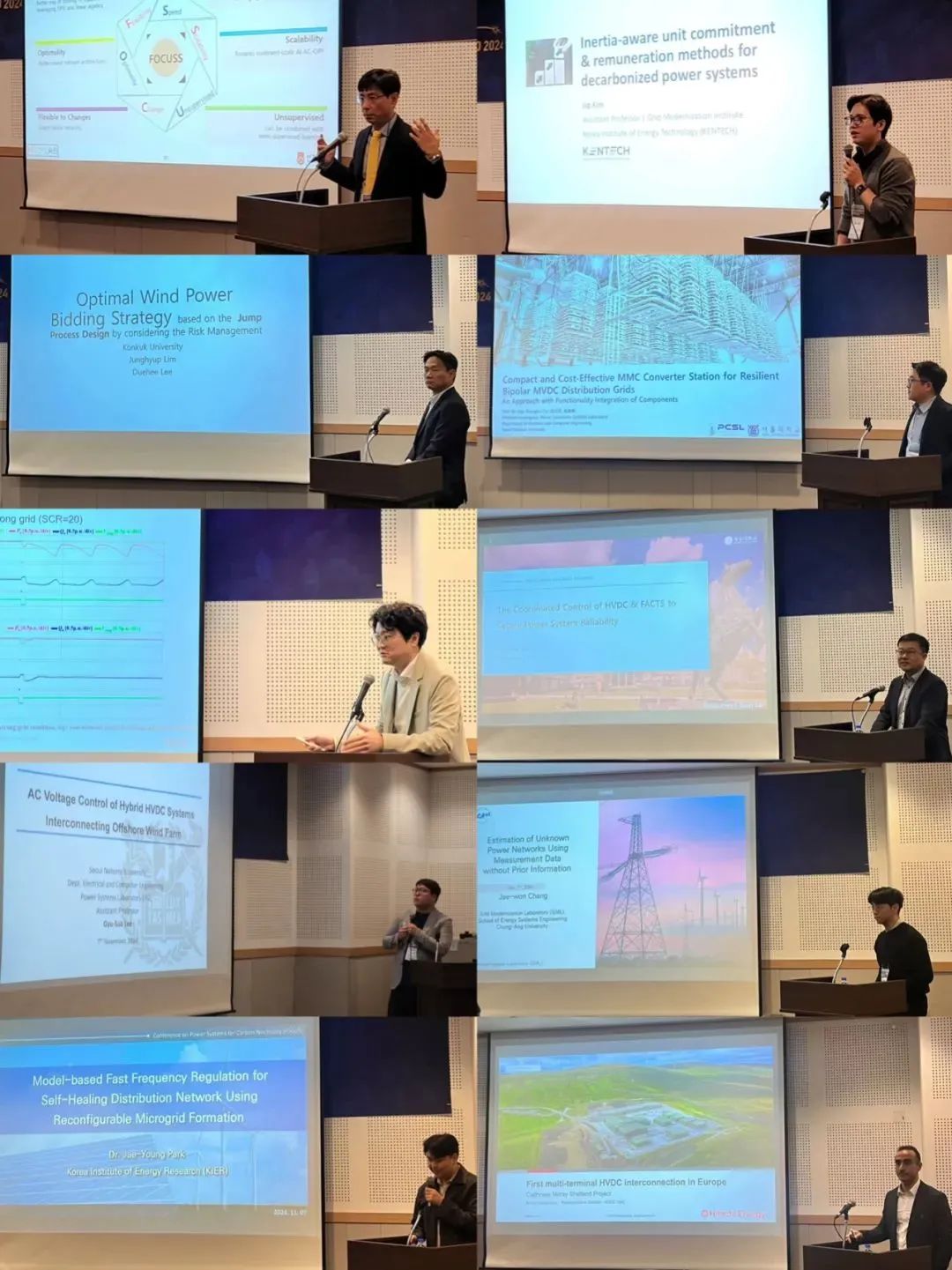 此次会议深入探讨了中韩在碳中和目标下的极高比例可再生能源电力系统的规划与运行、保护与控制领域的最新研究成果。中韩双方在以“面向碳中和的电力系统优化与市场运行”“现代电力系统中的电力电子技术应用”“高比例IBR电力系统的控制与稳定”“配电网中的智能电网技术”“HVDC技术的应用实例”为主题的6个分论坛上进行了研讨交流。在研讨会中,中方由华北电力大学周明教授、h图书馆 郭鸿业助理研究员、华中科技大学曲荣海教授、北京大学王剑晓助理研究员、武汉大学博士研究生李晨、浙江大学包铭磊研究员、南瑞继保副总工程师詹长江博士、h图书馆 李笑倩副研究员、南网超高压公司刘航研究员依次作专题报告;韩方由西江大学Hongseok Kim教授、韩国能源工程科技大学Jip Kim助理教授、建国大学Duehee Lee副教授、首尔大学Shenghui Cui助理教授、庆北大学Jae-Jung Jung教授、光云大学Minhan Yoon副教授、首尔大学Gyu-Sub Lee助理教授、中央大学Jae-Won Chang助理教授、韩国能源技术研究院Jae-Young Park研究员、日立能源研发经理Arman Hassanpoor博士共10位专家学者在会上进行学术报告。会中另设有学生论文海报展,经参会人员的投票推荐,高丽大学博士研究生Minhyeok Chang、h图书馆 博士研究生蔡啸与上海交通大学博士后王梦圆获得最佳论文海报奖(Best Poster Paper Award)。