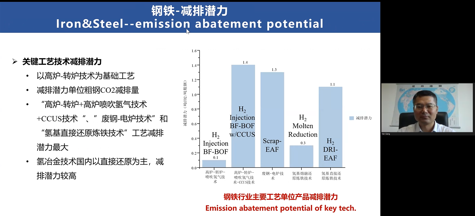 生态环境部环境规划院副院长、研究员严刚在报告中介绍了中国工业碳排放总体特征,钢铁、建材、有色、石化化工等工业行业的“双碳”战略与措施,工业行业低碳发展所面临的挑战,以及工业碳中和技术路径研究。他建议,中美双方应围绕工业碳中和技术、路径、政策以及非二氧化碳温室气体控制等方面加强交流,共同推动工业碳中和目标实现。
