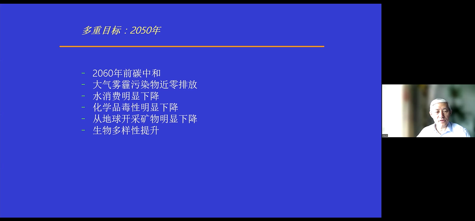 中国宏观经济研究院能源研究所研究员姜克隽围绕“我国多重目标下能源和经济转型路径和战略政策”进行了分享。他介绍了我国实现能源与经济转型构建的多重目标,包括2060年前实现碳中和、大气雾霾污染物近零排放、水消费明显下降、化学品毒性明显下降、从地球开采矿物明显下降和生物多样性提升,以及多重目标下,交通和建筑等领域的近零排放途径。他认为,如今碳中和不再是温室气体减排事务,而是技术与经济的竞争。2023-2030年是出现快速变革的时段,碳中和目标将推动能源行业和工业、交通等领域显著转型。