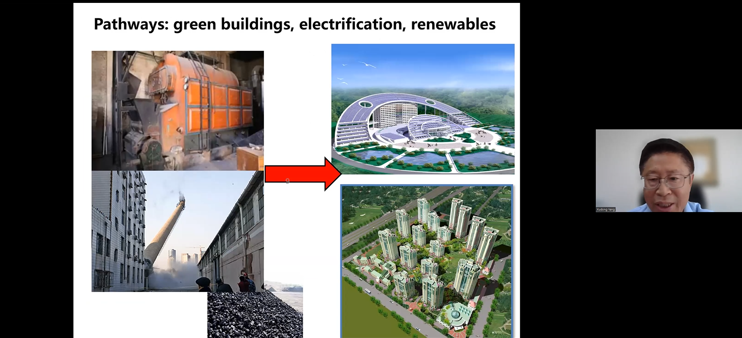 建筑学院副院长、教授杨旭东就“碳中和建筑与可再生能源的作用”进行了分享。他表示,碳中和背景下,我们将实现从化石能源到可再生能源的转型,可再生能源的发展将有效推动建筑领域的节能减排。他介绍了通过发展太阳能、生物质能、地热能、废气利用等可再生能源以实现建筑领域近零排放的技术路径。“我们有能源、有路径、有技术,中国必将实现可持续发展的未来。”他表示。