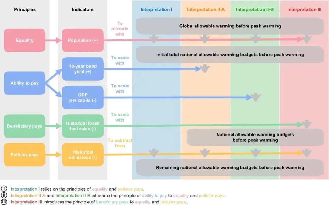 图1. 确定各国温升贡献的分析框架(原则、指标和分配程序)