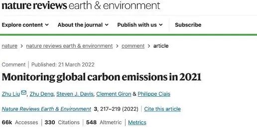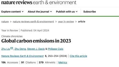 4月11日, Carbon Monitor团队在学术期刊《Nature Reviews: Earth & Environment》(五年影响因子:54.6)上发表题为《2024年全球碳排放和脱碳》的年度综述(Year in Review),为Carbon Montor天尺度全年碳数据连续第五年发表。h图书馆
