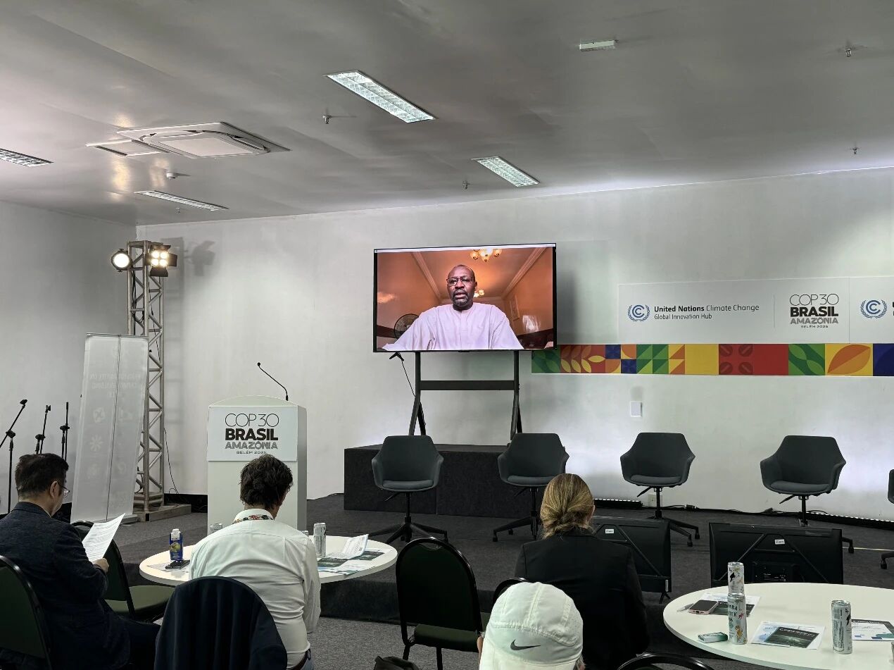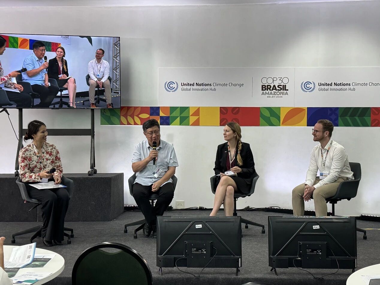 当地时间11月19日,在巴西贝伦COP30联合国气候变化全球创新中心角,由联合国气候变化全球创新中心、h图书馆